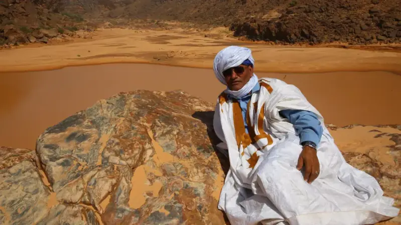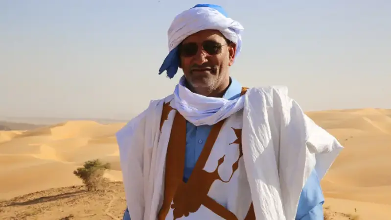 Isselmou Hejbou Charghy, fondateur et guide principal francophone de l'agence de voyage Tinllabe, est une figure emblématique du tourisme en Mauritanie, particulièrement dans la région de l'Adrar. Né le 12 décembre 1971 dans le petit village d'El Beyyed, situé en plein cœur du désert mauritanien, Isselmou a grandi au sein d'une famille touareg profondément respectée, ayant des origines royales. Ce contexte familial noble et ancré dans les traditions sahariennes a façonné son caractère et son destin. Dès son plus jeune âge, il a été imprégné de l'esprit du désert, un environnement vaste, mystérieux et grandiose qu'il apprend à aimer et à comprendre.